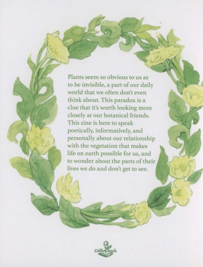 This zine is here to speak poetically, informatively, and personally about our relationship with the vegetation that makes life on earth possible for us, and to wonder about the parts of their lives we do and don't get to see.