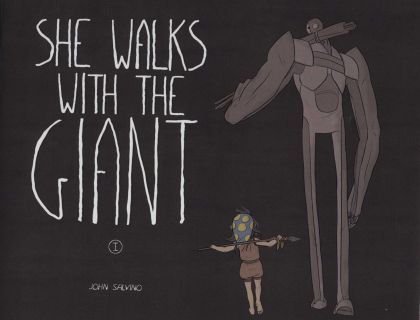 She Walks with the Giant is a three part fantasy/adventure graphic novel written and illustrated by John V. Salvino. It follows the lives of a giant on a mysterious quest and the rambunctious young girl who joins him.