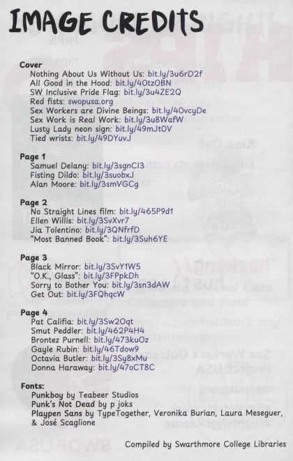 This zine was created to compile recommended reading and watching from Tina Horn as given in her keynote "Shadowbanned Nation: The Lust, Labor, and Genders THEY Don’t Want You to Read About!" at Swarthmore College, Thursday, November 2, 2023.