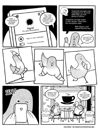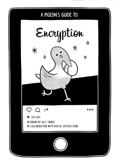 Pigeon has met a cool new bird, and she wants to send some flirtatious texts…but how can she make sure no one else can see them? Her friend Duck shares how encryption can help protect her sensitive messages.