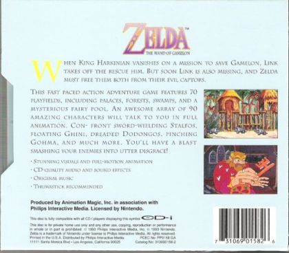 This is one of the three Zelda-based games developed by Philips exclusively for the CD-i platform. In the game you control princess Zelda. Her father, the king, went to the land of Gamelon to help Duke Onkled in his battle against the evil Ganon. A month has passed, but there is no news from the king. The brave hero Link decides to find him but then disappears. The young princess travels to Gamelon by herself to find and to free both her father and Link...