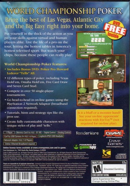 From Texas Hold'em to Seven-Card Stud and Omaha High-Low, poker is being played by an estimated 50 to 70 million people worldwide, and tournament action can be found on television almost every night of the week. With World Championship Poker, Crave will put players in the fast and freewheeling world of high-stakes poker on their own next generation console and handheld system.