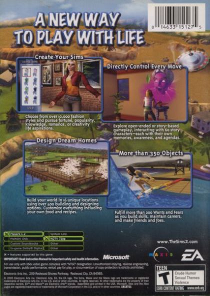 Invent a cast of characters and tell your own stories about them in The Sims 2. Create your Sims, give them personalities, and see what trouble they get themselves into. Directly control every move they make, customize their world, build their homes, create their food, and design their fashions! Guide them in their careers and fulfill their aspirations as you build their social network and avoid making enemies. Enjoy the peaks of pleasure and the trials of pain in your Sims' lives.