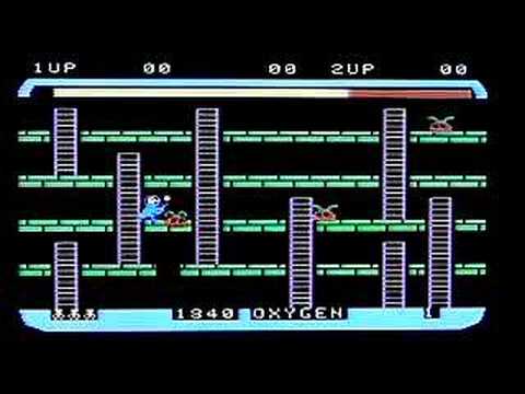 Space Panic is a 1980 arcade game designed by Universal. Chris Crawford calls it the first ever platform game, as it pre-dates Nintendo's Donkey Kong (from 1981) which is often cited as the original platform game. Space Panic lacks Donkey Kong's jump mechanic, disqualifying it as a platformer for some. The main character digs holes in the platforms that he must lure the aliens into. He must then hit them to knock them out of the hole and off the screen. In later levels, two holes must be lined up vertically in order to dispose of the aliens. There is also a limited supply of oxygen.