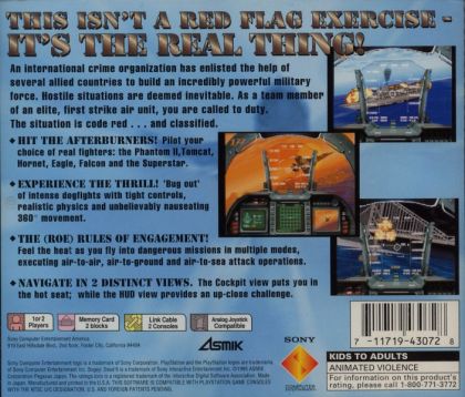 Bogey Dead 6 is a 1996 flight sim video game by Asmik. The game features six real fighter planes which include the F-4E, F-14D, F-15E, F-16C, F/A-18E and the F/A-22 Raptor. The game is played as an ace pilot for the United States Air Force. The objective is to protect the United States from communist invasion, enemy involvement and terrorist crime. The game is very similar to the Ace Combat series.