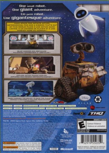 Zip, race and blast as you take WALL-E and/or EVE through a fast-paced adventure in the newest Disney/Pixar blockbuster movie, WALL-E. Explore 10 worlds filled with non-stop action and adventure, carry out intense missions, dodge dangerous enemies, solve puzzles and navigate your way through a futuristic world.
