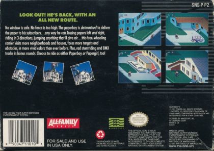 Paperboy 2 is a sequel to the video game Paperboy. It was released in 1991-1992 for a large number of home systems. While Paperboy debuted in arcades and was subsequently ported to home systems, this game was only released for consumer systems. It was released for the Amiga, Amstrad CPC, Atari ST, DOS, Game Boy, Game Gear, Sega Mega Drive/Genesis, NES, SNES, and ZX Spectrum.