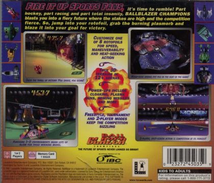 Ballblazer Champions is an action/sports video game released for Sony's PlayStation console. It was developed by Factor 5 and published by LucasArts in North America, and CTO SpA in Europe. It was released on March 31, 1997 in North America and in October 1997 in Europe. It is a remake of the 1985 video game Ballblazer that was released for the Commodore 64 and Atari consoles. The game takes place on an asteroid where an intergalactic BallBlazer competition is taking place, featuring creatures coming from throughout the galaxy. Players travel around a rink in spaceships, called "rotofoils", consisting of various weaponry, similar to the 1975 film Rollerball. The object is to score goals by moving glowing balls with the rotofoil. At the same time, opponents use their weapons to prevent goals from being scored.