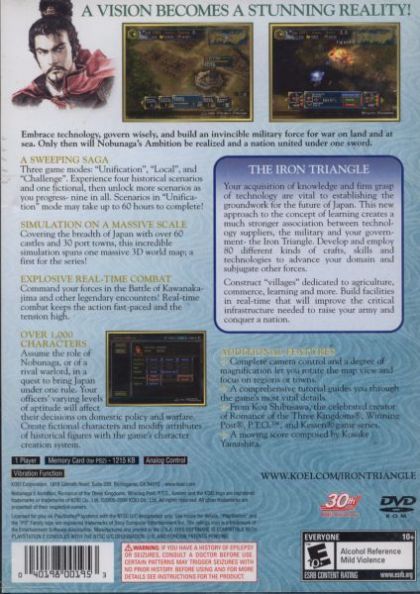 In the latest edition of the series to come to North America, the acquisition of knowledge and a firm grasp of technology are even more crucial to establishing the groundwork for the future of the country. Players must embrace technology, govern wisely and shrewdly, and prepare a near-invincible military force for war on land and at sea. Only with the mastery of these three elements, the "Iron Triangle," will the nation be united under one sword and will Nobunaga's dream be realized.