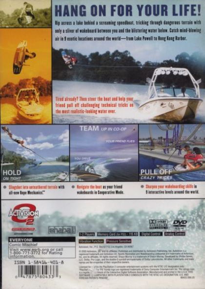 Hang on for your life in Wakeboarding Unleashed featuring Shaun Murray as you get ripped across a lake by a high-powered speedboat and trick through dangerous terrain. Feel the rush as you crash into houseboats and catch huge air in nine exotic levels with seven world-class wakeboarders. Tired already? Then drive the boat and help your friend pull off challenging technical tricks on the most realistic looking water ever.
