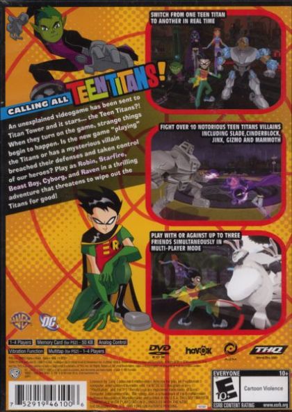 Teen Titans incorporates a variety of exciting missions and addictive game play to deliver an experience that captures the non-stop action of the highly popular series from Warner Bros. Animation. Teen Titans fuses hip anime-style visuals with awesome stunts, cool, cutting edge gadgetry and real "teen world" humor. The rich storyline features a steady stream of criminal conspiracies, alien invasions and world domination schemes, in environments taken directly from the show; all to ensure that the Teen Titan game experience will have fans everywhere shouting: "TEEN TITANS, GO!"