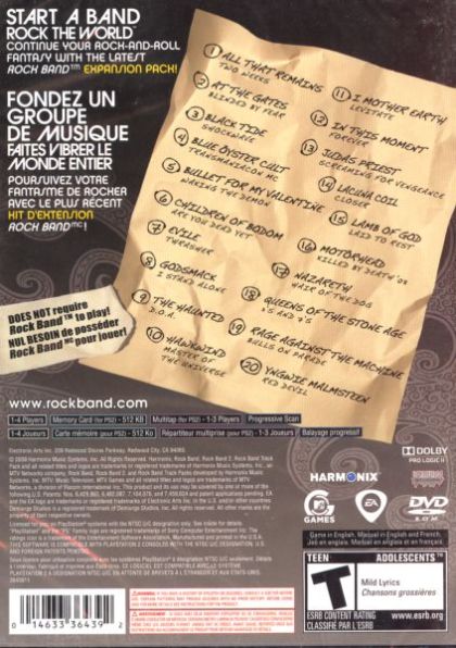 In addition, fans who buy the Rock Band Metal Track Pack for Xbox 360 or PLAYSTATION 3 system can play directly from the disc or download the songs onto their consoles' hard drives through a free offer with Xbox LIVE online entertainment network or the PlayStation Network. Once downloaded, the songs will automatically appear in the player's custom Rock Band library and can be integrated into setlists and played in all game modes. With more than 800 tracks available in the Rock Band music catalogue and regular releases of downloadable content every week, Rock Band Metal Track Pack is yet another way music-lovers can continue to expand and customize their music libraries.