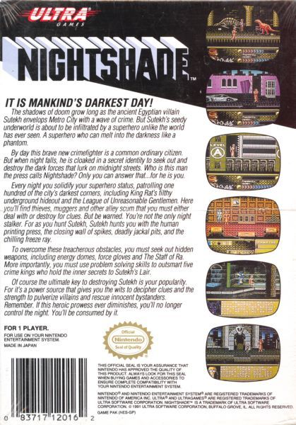 Sutekh has gotten rid of local superhero Vortex, and now Metro City is in the hands of crime. You are Nightshade - the superhero that nobody knows - and your goal is to stop the evil doers, including main villain Sutekh.