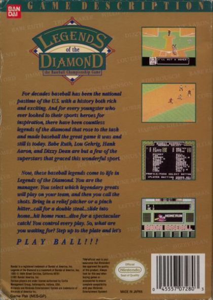 This baseball game features 30 all-time great baseball players (only 6 are pitchers). There is an exhibition mode which is just a single game and a tournament mode where you pick your players and then the computer pits you against the others in random made teams; win and you advance on to the next game.