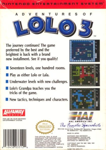 This time, Lolo has a red friend who will do for him some of the work. Unlike the two previous Lolo games, here you can wander around a world map and enter different locations in a non-linear fashion. However, some of the locations remain blocked until you find a key after completing another level.