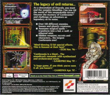 The Legacy of evil Returns...As a descendant of Dracula, you must end the vampire bloodline. Can you rid the world of this unspeakable terror? Uncover the mystery of Castlevania, and challenge an adventure as legendary as it's name.