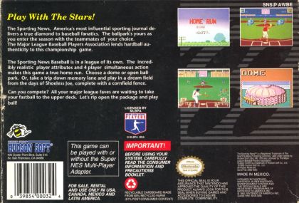 The Sporting News Baseball doesn't feature a Major League license, but does feature the MLBPA license, meaning that it features some of the best players of the time, such as Ken Griffey Jr., Daryl Strawberry and John Smoltz, to name a few. There are only three stadiums to pick from; two are generic but the other is the baseball field from the movie Field of Dreams.