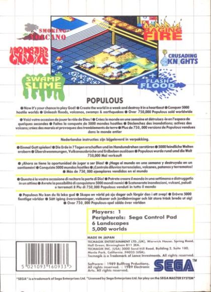 But you don't have to let your people have all the fun; the god's have other tools as well. You can drown your enemies one at a time with your land lowering powers. Submerge their towns in swamps. Raise a volcano in the middle of their best farmland. Even better, you can flood the land and drain all the people who didn't build on high-ground.