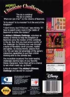 Mickey's Ultimate Challenge is a puzzle game in which the player chooses either Mickey or Minnie to play with. They'll find five characters from the Disney's universe in the kingdom, and will be prompted to help them in several tasks.