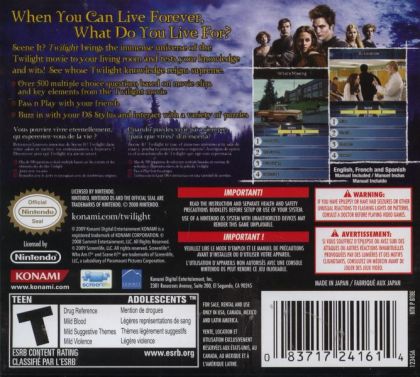 Scene It? Twilight players will be completely submerged into the chilling universe of the Twilight novels and movies as they interact with some of the most iconic locations, characters and scenes from the first film. Fans will put their knowledge to the test to determine who the ultimate Twilight expert is!
