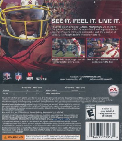 Celebrating 25 years of innovation, Madden NFL 25 unlocks the power, precision, and creativity of the NFL ball-carrier. Whether you're a slashing running-back, dual-threat QB, or ball-hawking safety, unleash 30 new moves and string together devastating combos with the all-new precision modifier in Madden NFL 25.