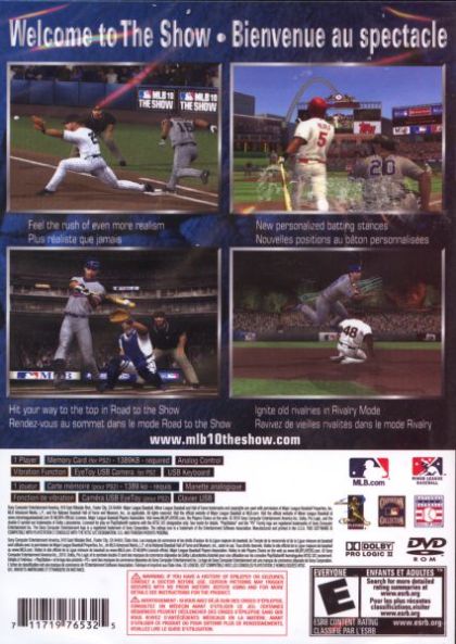 MLB 10 for PS2... Welcome to The Show All-Star. The best selling and highest rated baseball franchise is back in MLB The Show throwing you into an unsurpassed baseball experience where big moments come alive. It's all here too; from AI improvements to new personalized batting stances to Joe Mauer, newly crowned American League MVP, as the new cover athlete. Get ready. The Show is about to begin . FEATURES: AI Improvements for even more realism; New Personalized batting stances; Ignite old rivalries in Rivalry Mode; Find your way to the top in Road to the Show; Updated rosters and new stadiums.