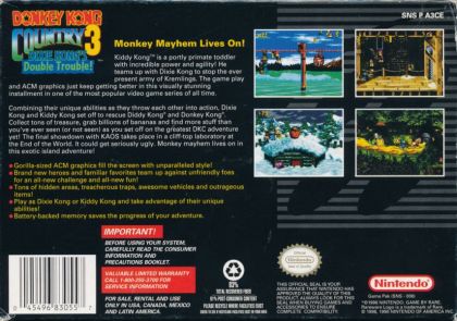 This time both Donkey Kong and Diddy Kong have been kong-napped by a mysterious new leader of the Kremlings, and it's up to Dixie and new team mate Kiddy Kong to save the day.