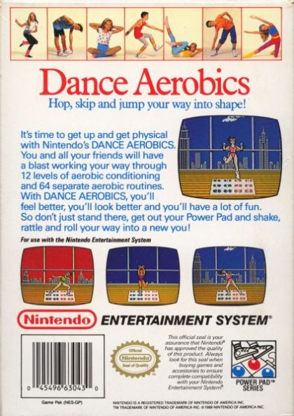 Players use side B of the Power Pad accessory (a floor mat with 12 pads in a 4 by 3 grid) to follow the movements of an aerobics instructor. To succeed the player must press the pads with there feet and hands at the same time as the on screen aerobics instructor. Any missed movements are recorded on a mistake counter and 10 missed movements will fail the level. The routines (a set of repeated movements) start slow and simple with a bit of no-penalty practise time however as the player gets better the routines get more complex with less practices time. Each level has a set number of routines that increase with each level from 4 at the start to a total of 32 on the final level (level 7). At the successful completion of each level the player will get a pass stamp which they can enter later to skip that level.