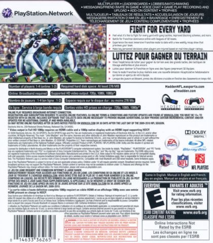 Experience first-hand what it's like to Fight for Every Yard in Madden NFL 10. With the all-new Pro-Tak™ animation technology, players have more control over the outcome of each play. Whether driving a receiver towards the first down, or battling for a fumble at the bottom of a pile, the play won't end until the whistle blows. Add to that the most immersive broadcast presentation and online innovation to date, and Madden NFL 10 captures the authenticity and emotion of the NFL like never before.