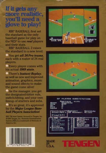 R.B.I. Baseball 2 is similar to the original R.B.I. Baseball in terms of gameplay. This time around the game uses the teams and statistics from the 1989 season. Just as in the original, you get to see what it's like to step up to the plate as Ricky Henderson, pitch the ball like Nolan Ryan, and catch a line drive like Ozzie Smith.