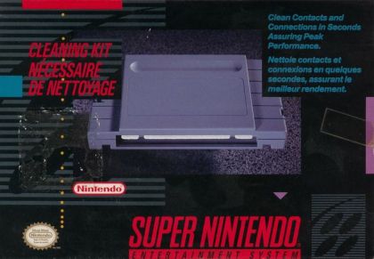 The Super NES Cleaning Kit maintains the contact points of your Control Deck and game paks for peak performance. Regular use can extend the life of your Super NES system. Correct minor TV screen malfunctions caused by dirty connectors. Avoid empty or scrambled TV screens during game play. The Super NES Cleaning Kit is quick and easy to use!
