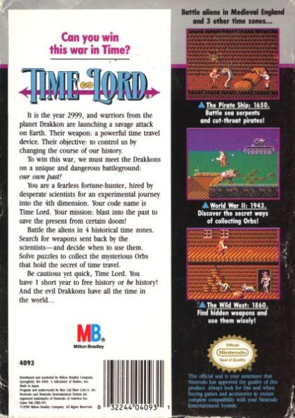 In this game you play the role of a time lord who has to travel through time in order to stop time travelling aliens from changing the earths history. The Game play involves you fighting off aliens who are dressed like the people from the various time period that you are in. The weapons at your disposal vary depending on what point in time you are in. In order to travel to another time zone you must find 5 orbs which are carefully hidden around each level and require some puzzle solving and platform jumping to get to. Time in this game runs by very fast and you inly have until the year 3000 to complete the game otherwise the world will be blown up.