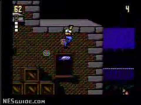 The climbing stages consist of you climbing a building and shooting enemies with a reticle that you can move all over the screen.You have to get to the top of the building before time runs out. Once at the top you will have to fight an android boss. Such as Mega Slug, Techno Beast, and the Sand Yeti. The android boss fights take place on the buildings rooftops with a side view of the action. The player must drain the energy from the androids by repeated shooting bullets into them.
