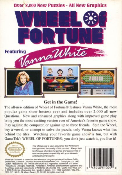 The Vanna White Edition differs from previous Wheel of Fortune games on the NES in that it actually bears the likeness of Vanna White. Also, there are avatars for the player contestants, and the wheel animation is different.