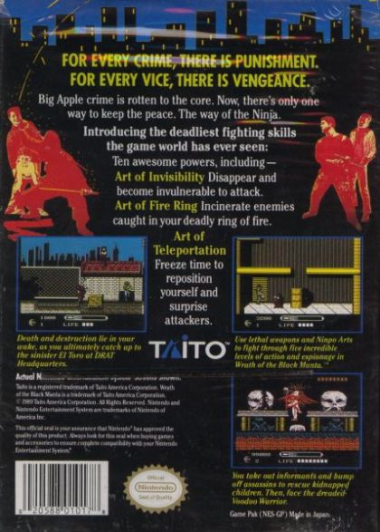 The Big Apple is being overrun with crime, and the cities children have been mysteriously disappearing. It is up to the Black Manta to rescue the children and stop whomever is behind this. In addition to your ninja skills, you will be able to find additional powers (including invisibility and teleportation) to help you out against the numerous and well armed villians. Wrath of the Black Manta is a side scrolling arcade style action game with five different levels. Throughout each level you may come across various clues to help you find where to go next or lead you to a hidden location. Some of the bad guys you come across may also possess useful knowledge and can be interrogated (if they don't kill you first that is!)
