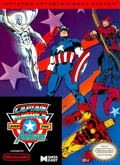 You play as Captain America or Hawkeye. In the one player mode, you must fight your way through various thugs to rescue Iron Man and the Vision. This game is a side scroller, somewhat reminiscent of Bionic Commando in which you fight through a level then move to an overhead map to decide where to go next. In between levels, Wasp gives you hints.