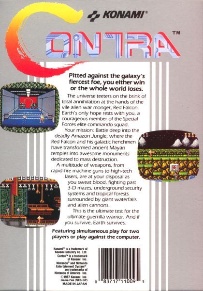 In the year 2631, a small meteorite has fallen into the Galuga archipelago, located 20km northeast off the coast of New Zealand. Two years later, a terrorist group known as Red Falcon has seized the island in preparation for an alien invasion. The earth's marines sent two members of their elite Contra unit, Bill Rizer and Lance Bean, to neutralize the terrorists.