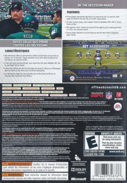 NFL Head Coach 09 provides a complete NFL experience, offering a variety of different ways to control an NFL franchise, on and off the field, in-season and off-season. With strategic game planning features, NFL Head Coach 09 places gamers in the coach's seat by allowing gamers to comprehensively scout the opponent, build playbooks, and develop a team that will adapt to the philosophy and system of an NFL franchise.