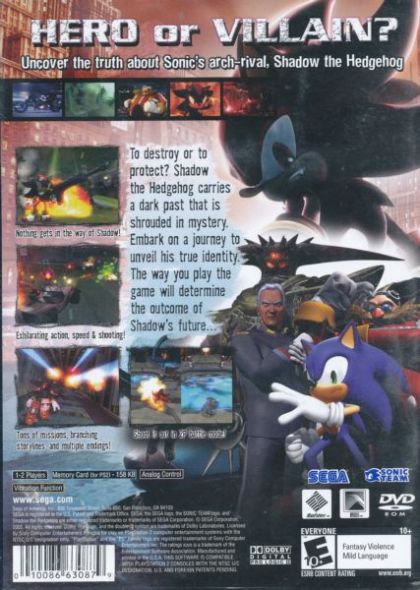 Now, Shadow's once peaceful planet is under siege by a malevolent force. The government must take whatever means necessary to stop this deadly attack. Timing is critical and the Chaos Emeralds are at the heart of it all. In order to secure the Emeralds, Shadow must play both sides...but the path he takes will ultimately be up to you!