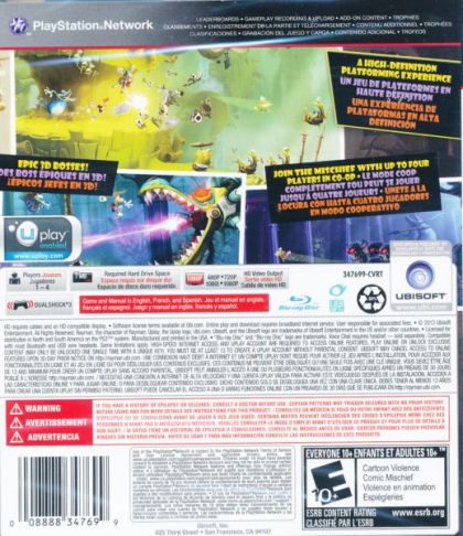 Rayman, named platformer of the year and winner of multiple artistic and musical achievements, is back on Xbox 360, PS3 and PC with a brand new adventure. Michel Ancel, celebrated creator of Rayman(r), Beyond Good & Evil(r) and the Raving Rabbids(r) is bringing his innovative creativity to these platforms. Additionally, advancements in the UbiArt engine has helped pave the way for new, more detailed graphics and lighting.