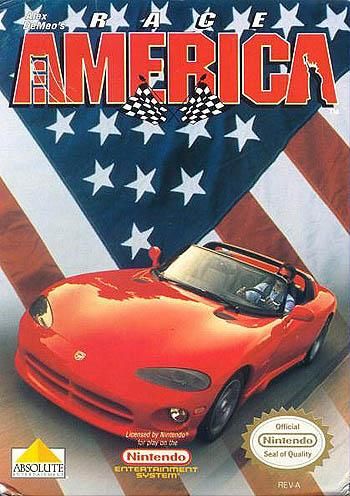 Race America is a 2-car cross-country racing game. Either 2 players can compete on the same screen, or the computer can control the second player. The game provides eight colorful opponents to race against, each of whom is supposed to have distinct advantages in a race. Each race begins from a side-scrolling perspective as the 2 competitors speed out of the gate. After a certain distance, the perspective shifts to third person and the driver in the lead occupies the top half of the screen while the driver in second is relegated to half of the lower screen. Occasionally, the game also employs an overhead view. To add to the challenge, the game's cars have 6-speed manual transmissions which players must shift using the control pad, but not while pressing the gas button.