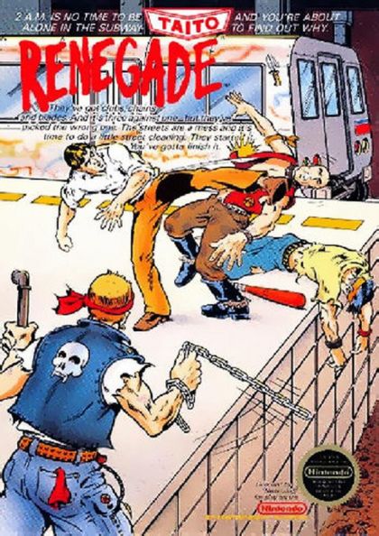 This is the conversion of Taito's scrolling beat 'em up, which later produced unofficial sequels Target: Renegade and Renegade III: The Final Chapter. The game is set on the mean streets of Brooklyn, which you must venture through to meet your girlfriend, and then rescue her from her kidnappers. This is split into five levels, taking you through the subway and the docks as well as some inhospitable streets. A wide range of aggressive moves are on offer, including headbutts, kicks, punches and flying kicks. Much of the game's violence is depicted in a fairly tongue-in-cheek style, with an element of attempted humour along the way.