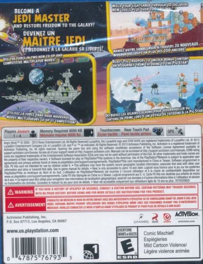 Iterating on many of the engaging mechanics of Angry Birds and Angry Birds Space, Angry Birds Star Wars evolves the core game design and hilarious tone of previous entries in the series with new characters, challenges and environments that pay homage to the iconic hallmarks of the Star Wars universe. This title adds 20 never-before-seen exclusive levels - in addition to the existing 200 from the original Angry Birds Star Wars mobile game - and for the first time ever, multiplayer modes. Play alongside family members or friends in two-player co-op mode to achieve a combined high score or against them (up to four players) in competitive mode. In addition, the game delivers achievements and trophies, leaderboards, high-definition graphics (on HD-compatible systems) as well as unlockable bonus levels, items and content.