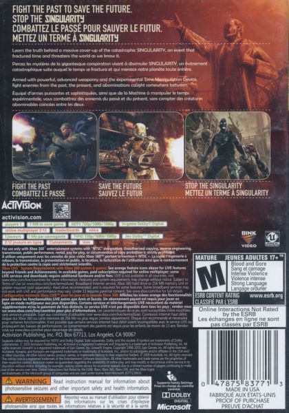 Singularity, the new first-person action game from Raven Software pits shooter and sci-fi fans against a devastating fracture in time. As players attempt to unravel a conspiracy, they must fight their way through an ever-shifting environment, haunted with time-ravaged creatures and mysteries, while sudden time waves hurl them back and forth between 1950 and the present day. Use wits and the perfect weapon for the job - the Time Manipulation Device (TMD) - to unravel the conspiracy behind this timeline calamity and prevent its catastrophic spread.