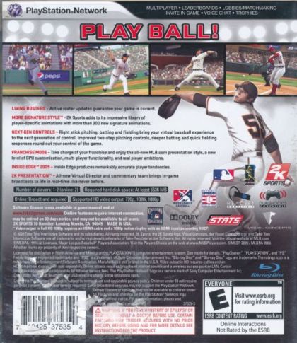 Major League Baseball 2K9 or, in short, MLB 2K9, is a MLB licensed baseball simulation video game published by 2K Sports. The game was developed for Microsoft Windows, Xbox 360, PlayStation 3, PlayStation 2, PlayStation Portable and Wii.[2] The game was released on March 3, 2009 to universally negative reviews .