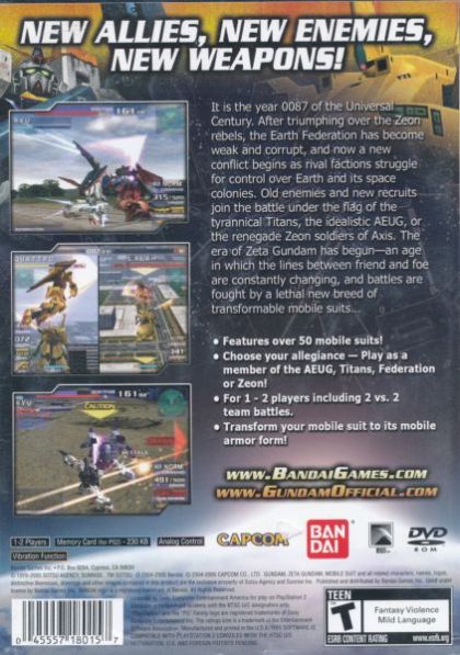 Seven years after the end of the devastating One Year War.... The victorious Earth Federation has become corrupt and oppressive, and the elite Titans police force has taken on dictatorial powers. As the A.E.U.G. rebel group struggles to defeat the Titans, the heroes and villains of the original Mobile Suit Gundam series find themselves on the same side of this new conflict. The focus, however, is on a new hero named Kamille Bidan, the pilot of the transforming Zeta Gundam.