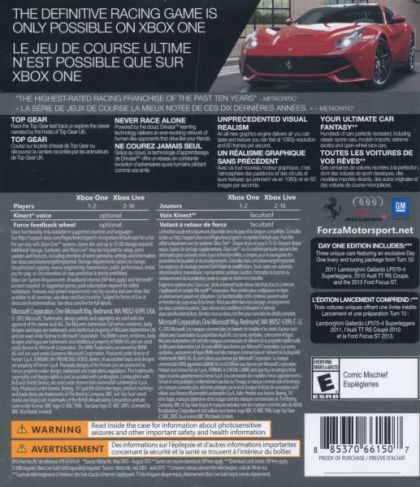 "Forza Motorsport 5" is a cinematic automotive journey starring the world's greatest cars and tracks. Built from the ground up to take advantage of Xbox One and the vast power of the cloud, no game better delivers the wide-eyed thrill of racing.