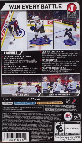 The golden era of hockey videogames is back with NHL 07 brought to you by EA SPORTS - brand of the best-selling hockey videogame. Handheld hockey now rivals its counterpart on the ice with unmatched level freedom and control - and after years of playing only on home ice, you can finally take your team on the road with NHL 07 for the PSP.