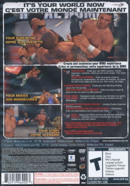 The best-selling fighting videogame franchise returns to the virtual ring with the most authentic, entertaining and compelling simulation of WWE programming to date. Featuring unparalleled creation tools, a robust Superstar roster, key franchise improvements and a few surprises, WWE SmackDown vs. Raw 2010 delivers the empowering freedom to create, customize and share gameplay experiences. It's your world now.