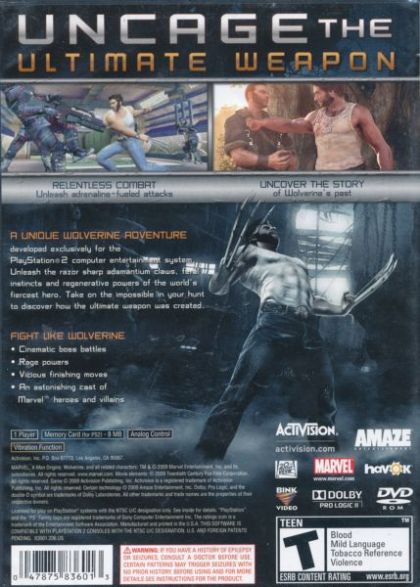X-Men Origins: Wolverine is an epic action-adventure featuring a true-to-character Wolverine gameplay experience that takes gamers through and beyond the movie's storyline. Set in a variety of vivid real-world locales, the title challenges players to hone their animal instinct as they uncover hidden dangers, hunt and destroy enemies, and take on seemingly insurmountable situations while discovering the truth about Wolverine's tragic past. With razor-sharp adamantium claws unsheathed, the future X-Man enacts lightning-quick combat, evasive maneuvers, in-depth combo attacks, and an array of brutal finishing moves. Wolverine doesn't just deliver massive damage, either ... he also takes it, thanks to his mutant regenerative power that heals him in real time right before the player's eyes.